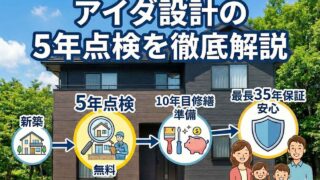 アイダ設計の5年点検は無料ですが、最長35年保証の維持には約10万円の有償防蟻工事が必須です。点検内容は外壁や床下の確認が中心。10年目の大規模メンテナンスに向けた準備や、他社ハウスメーカーとの費用比較についても詳しく解説します。
